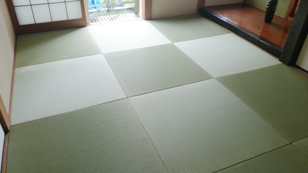 つくば市 / 縁なし畳、天然目積表 (敷き方:半畳市松敷)